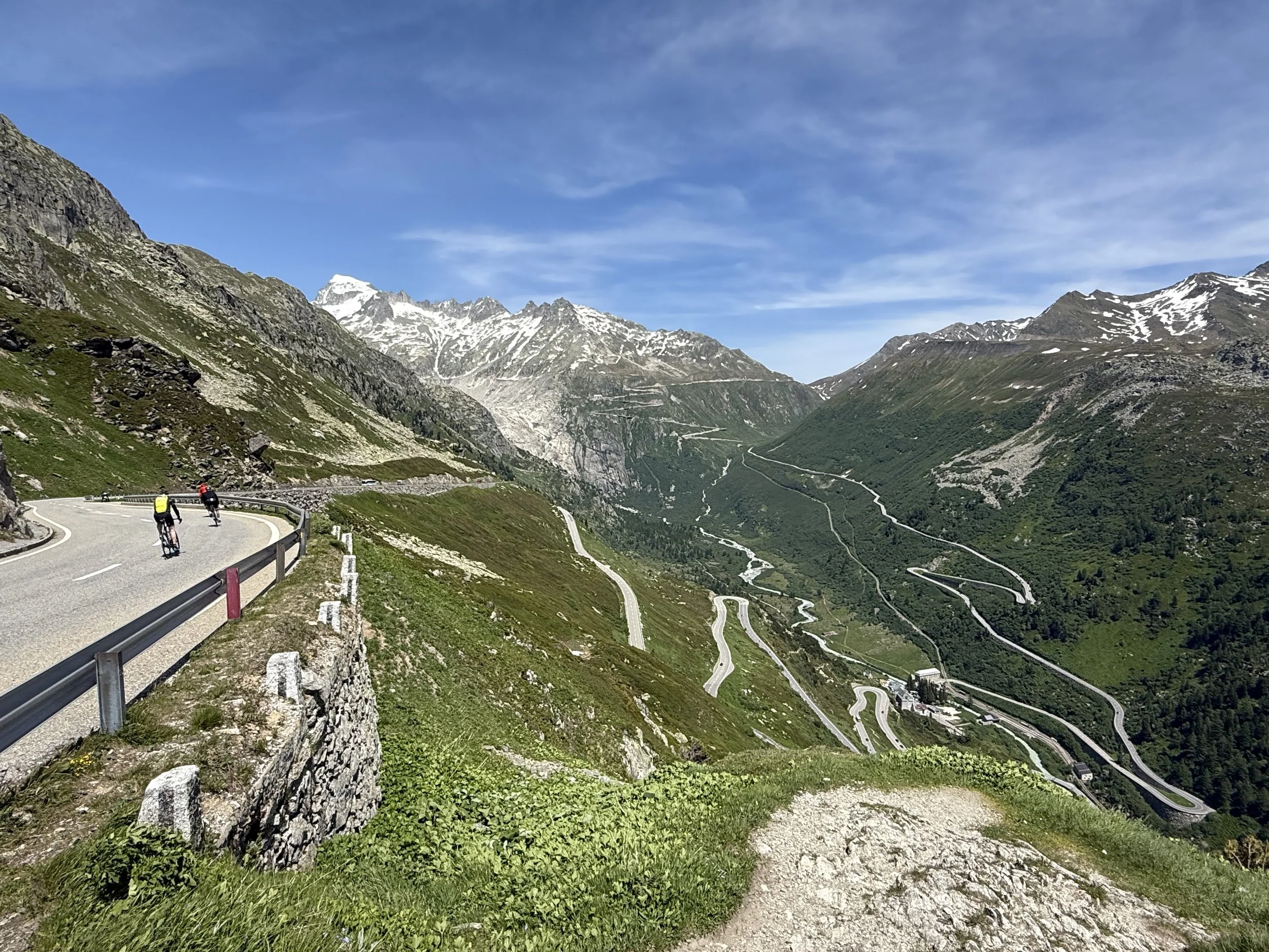 We also take in the Nufenenpass and cobbled climb of the St Gotthard, as well as the massive Sustenpass passes and the beautiful Oberalp. Iconic scenery and high, high mountains.